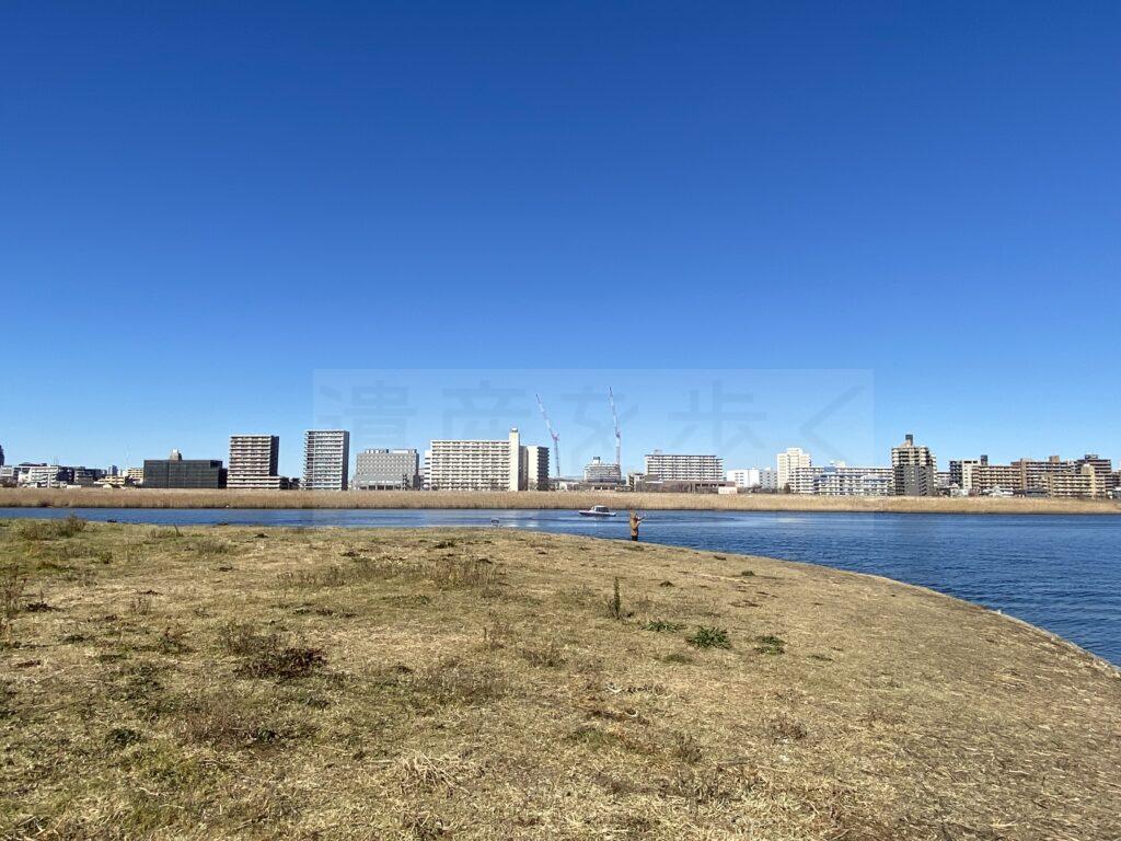 見学を終えて多摩川の川辺を見やると釣り人やモーターボートを操船する人がいて、空は晴れてて牧歌的な雰囲気でした。